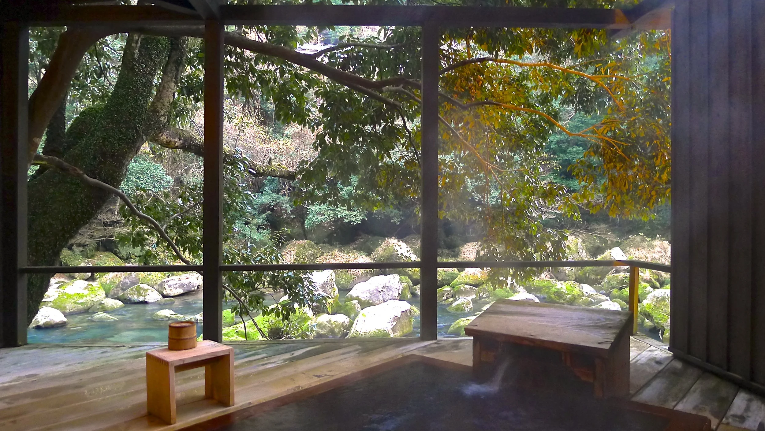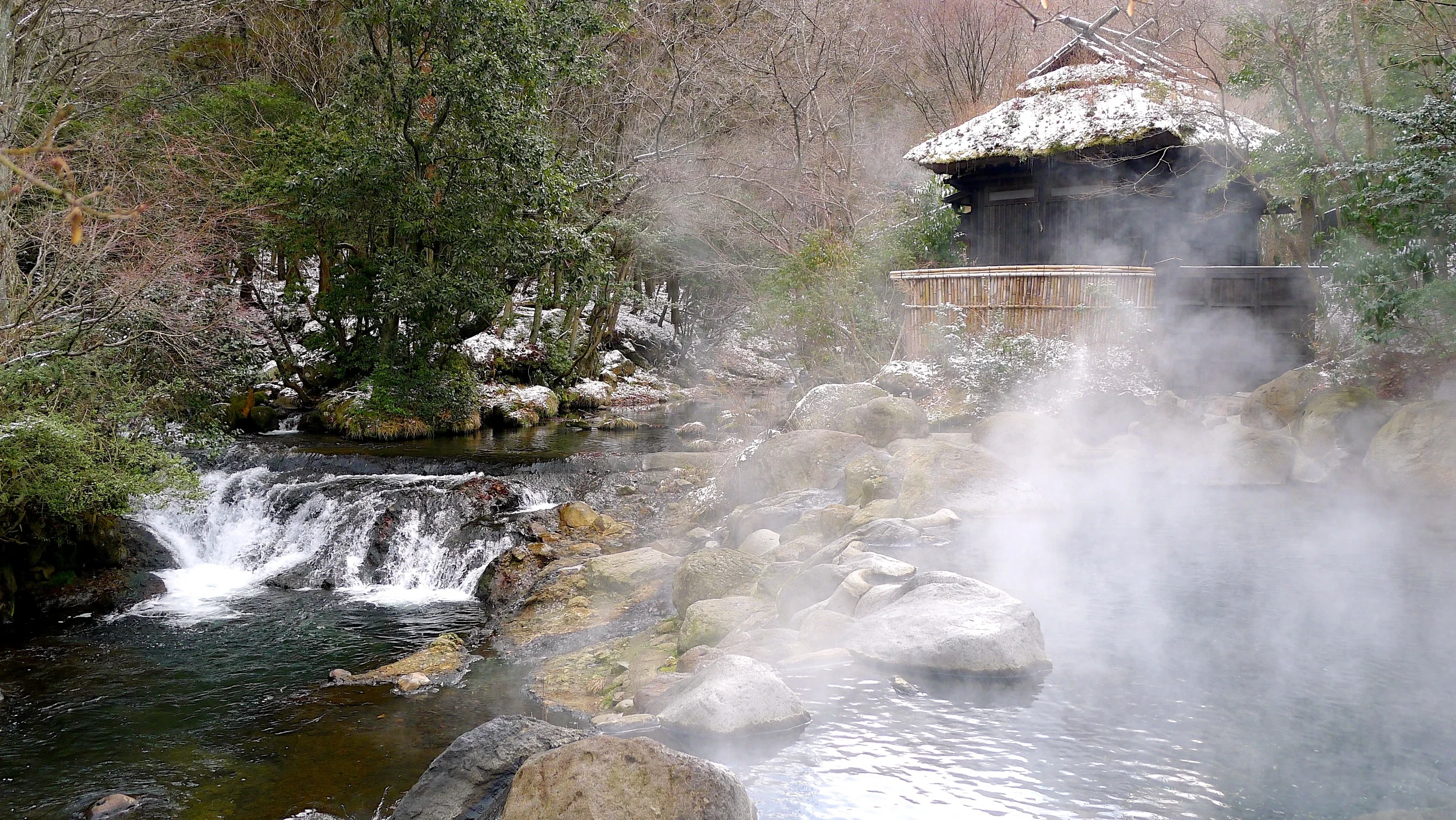 Kurokawa Onsen is a gorgeous hot spring town in the middle of the Aso volcanic region, and Yamamizuki is a standout property in this town. The star is the outdoor riverside bath, overlooking rapids and exceptionally tranquil. To be shoulder deep in the curative waters with snowflakes falling gently around is wonderful.